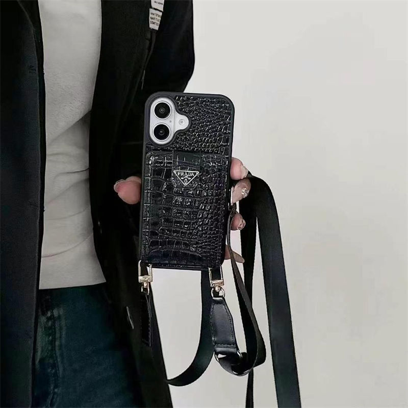 【商品名称】pradaハイブランドGalaxy s26 ultra s26 S25ultraケース肩掛け背面カード収納iphone17/16promaxケースレディース