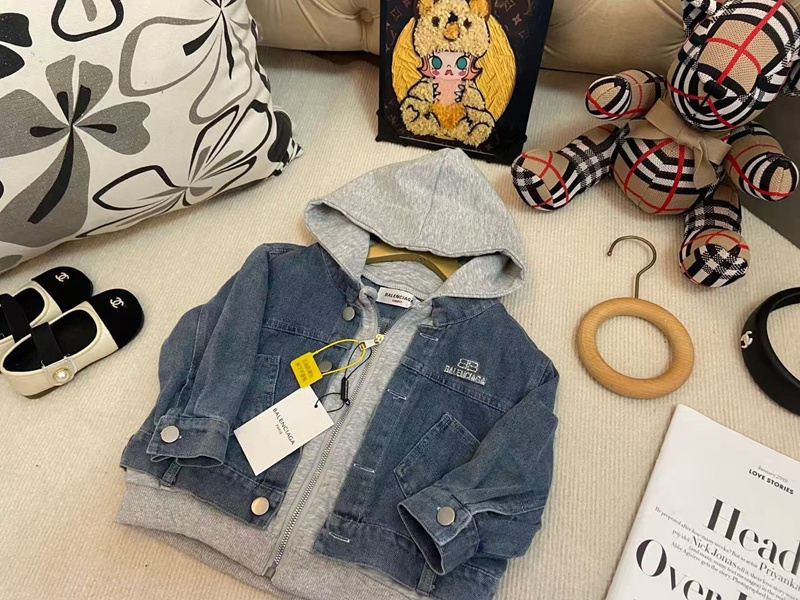 シンプルだからこそデイリー使いにぴったりのバレンシアガキッズ用のバレンシアガ風フード付きデニムアウターで 。 季節の変わり目や冷房対策など、寒い日の重ね着にもオススメ!幅広いシーンで活躍するアイテムです♪