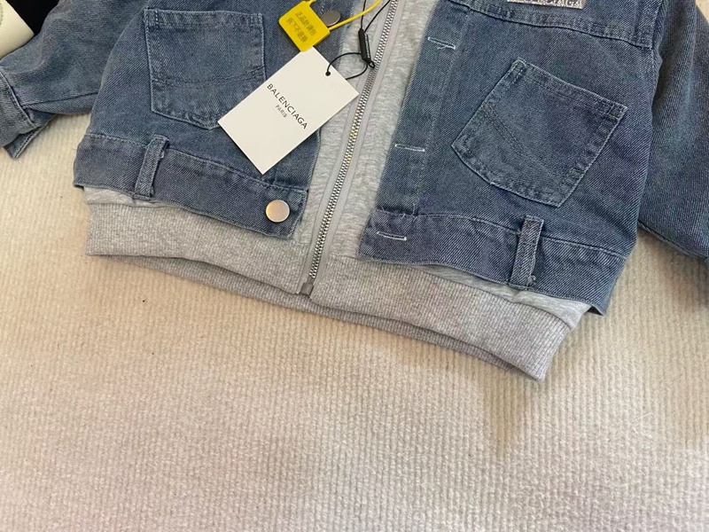 ブランド名:バレンシアガ子供服キッズバレンシアガ風デニムフード付きジャケット ロゴ入り カジュアル