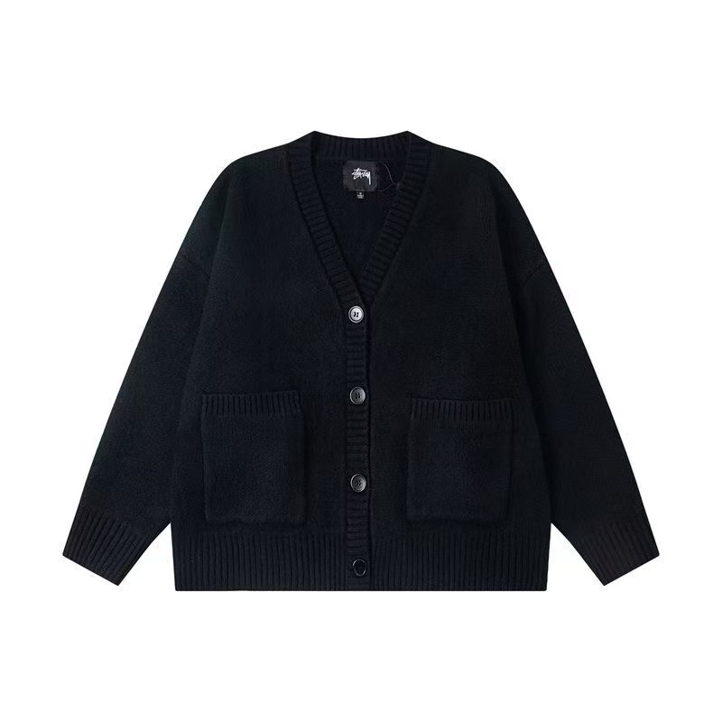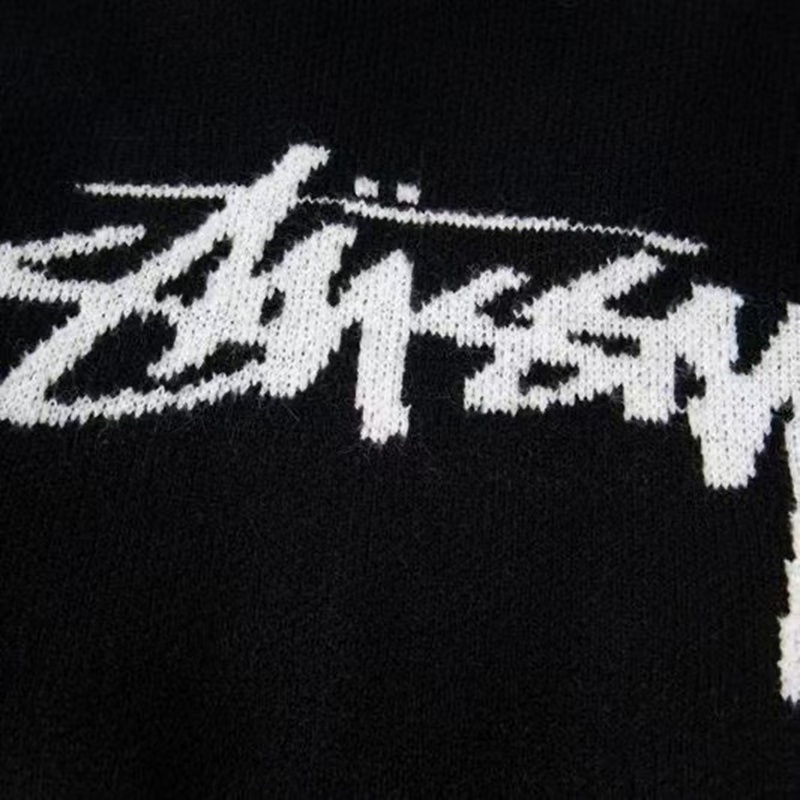 ブランド名: ステューシー ロゴ入りブラックニット 大人向け ストリートスタイル韓国風Stussy 服男の子ステューシー