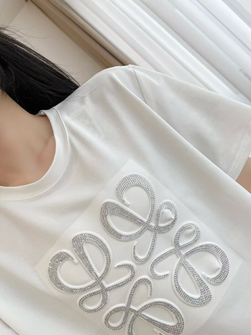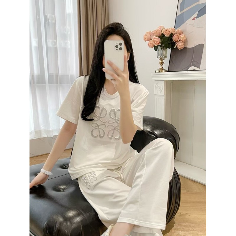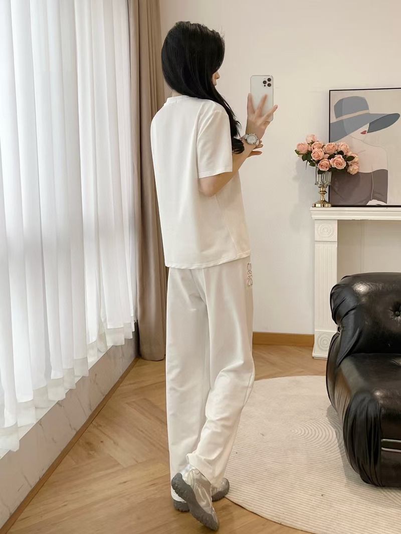ブランド名: ハイブランドエンブロイダリーロゴ半袖 T シャツ+パンツ 2 点セット ホワイト 人気LOEWE