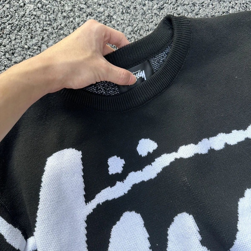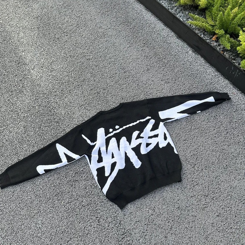 ブランド名: ユニセックス ステューシー風カジュアルニット ブラック × ホワイト