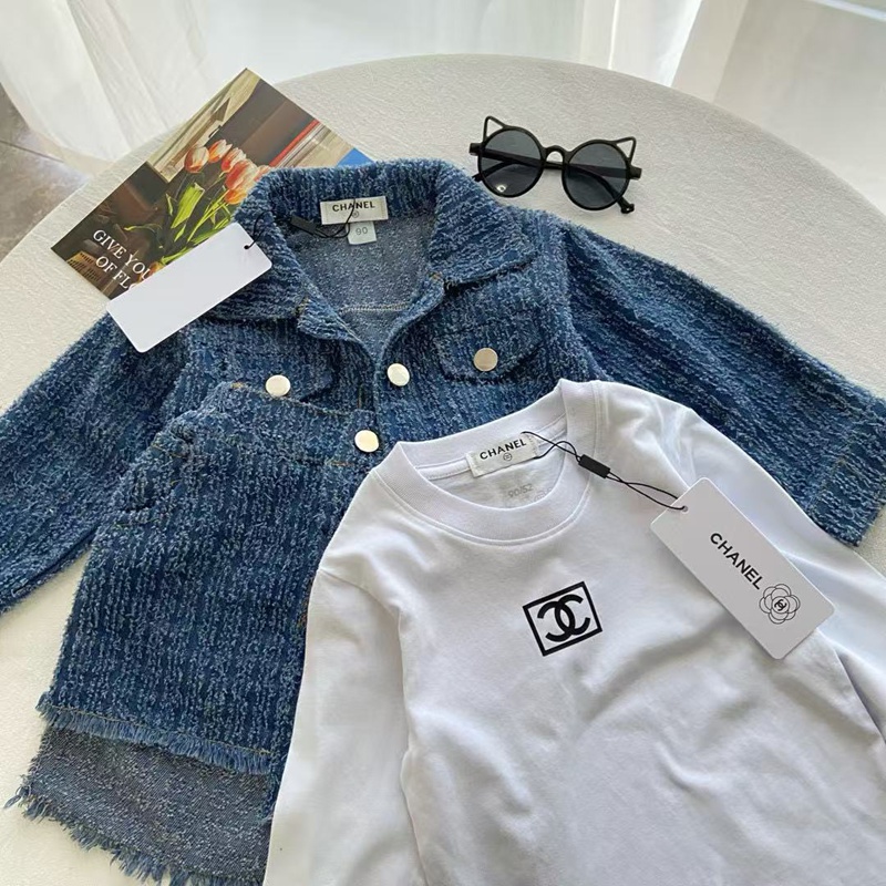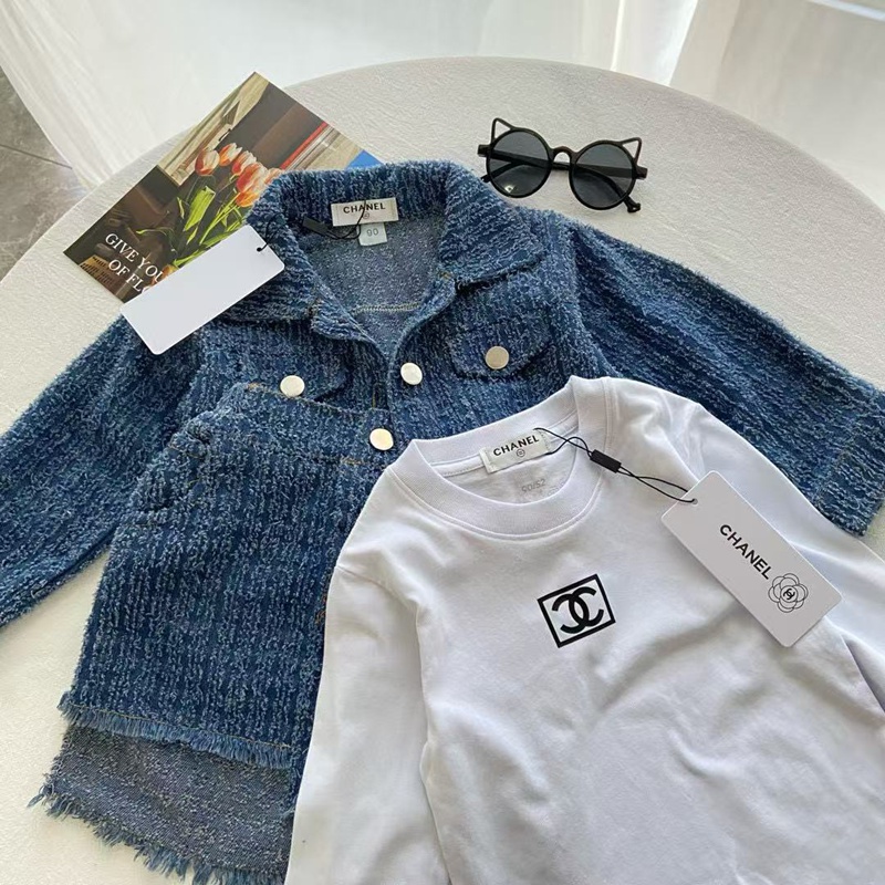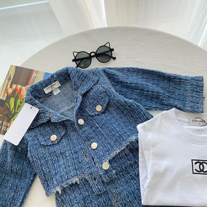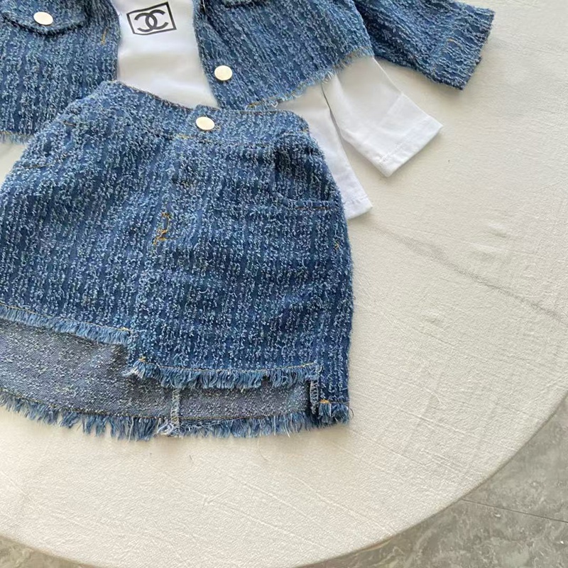 ブランド名: シャネル キッズ ガールズ 3 点セット ジャケットロング Tスカート ブランドロゴ入り子供服シャネル chanel