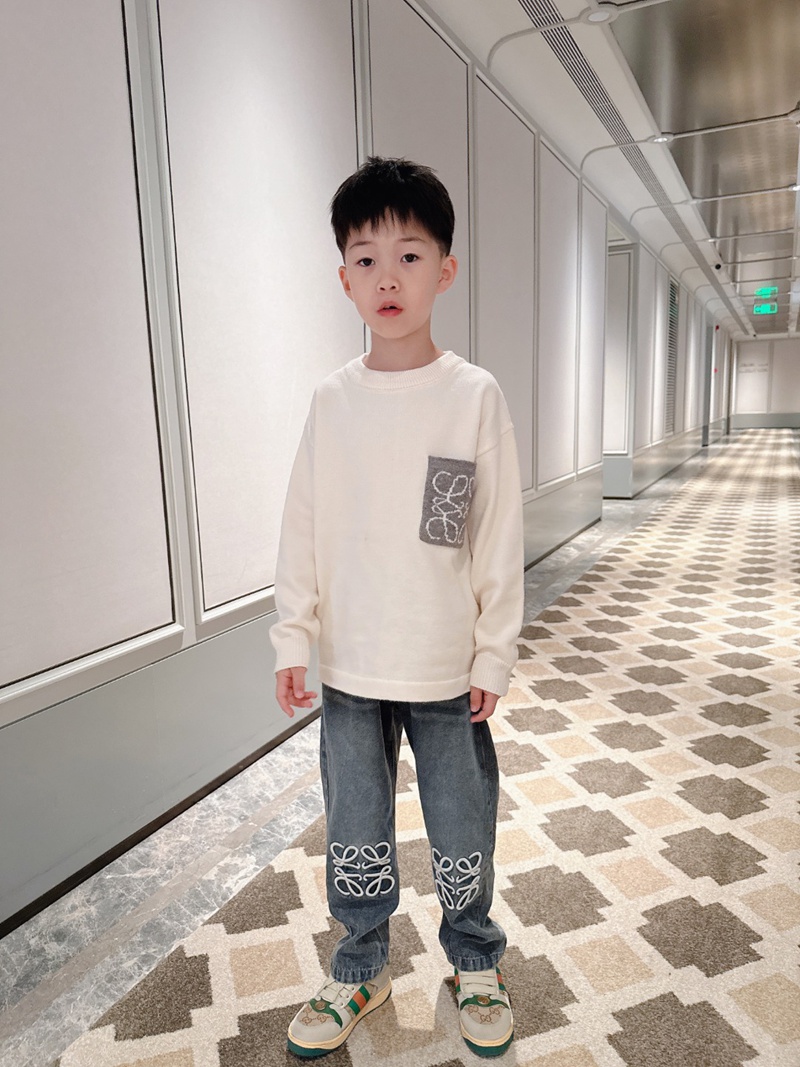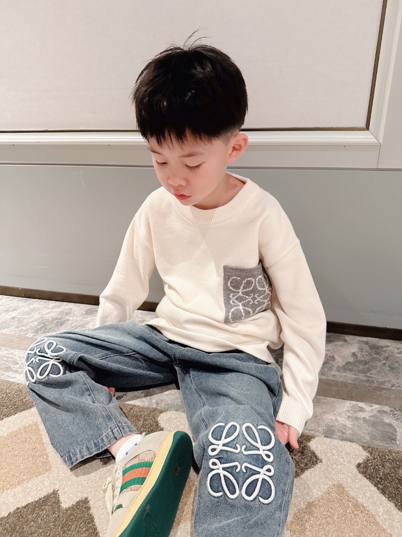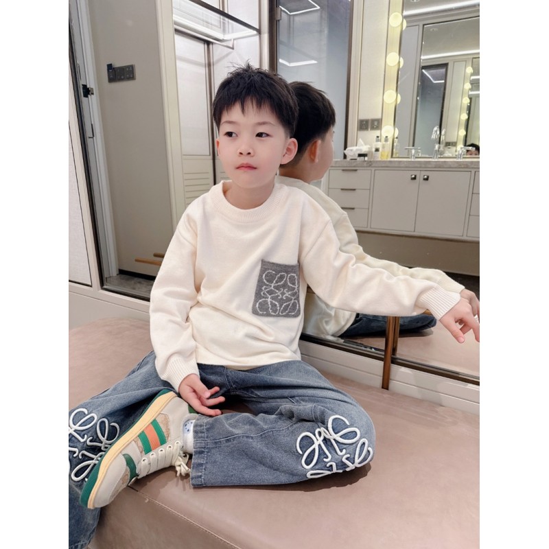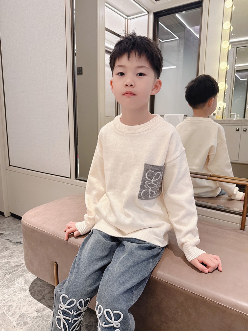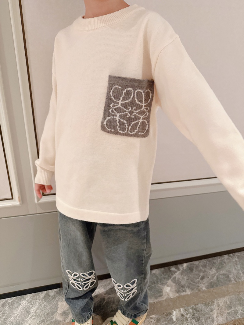 ブランド名: ロエベloeweキッズ ミルクホワイト ロゴ刺繍 ニットセーターloewe 子供服秋冬