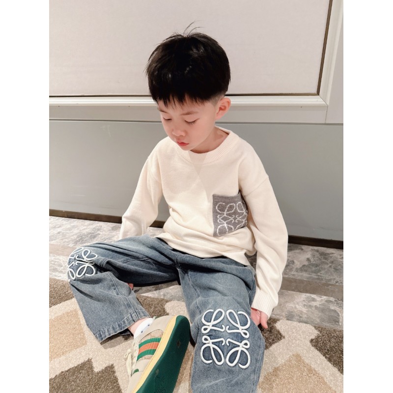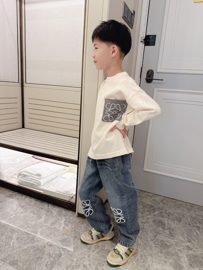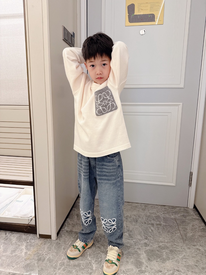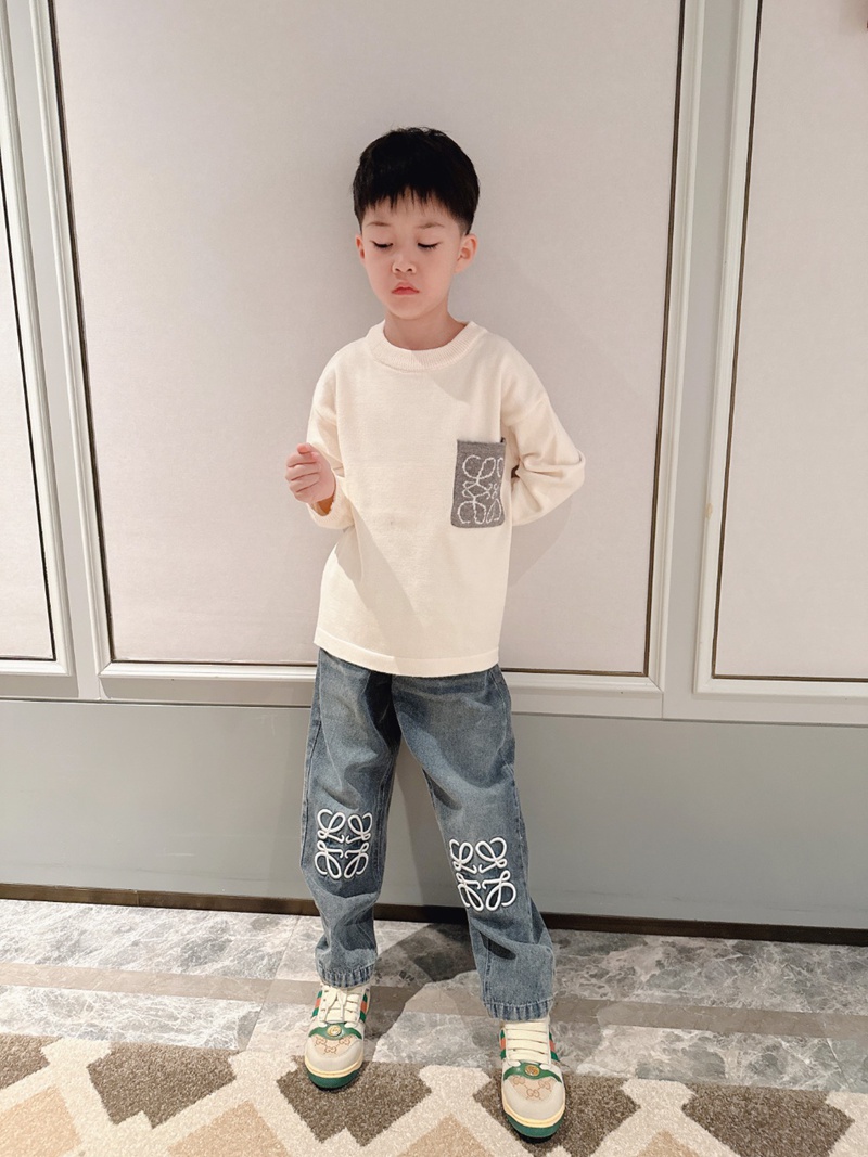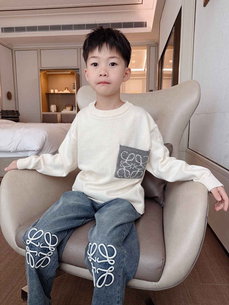ブランド名: ロエベloeweキッズ ミルクホワイト ロゴ刺繍 ニットセーターloewe 子供服秋冬