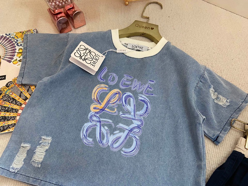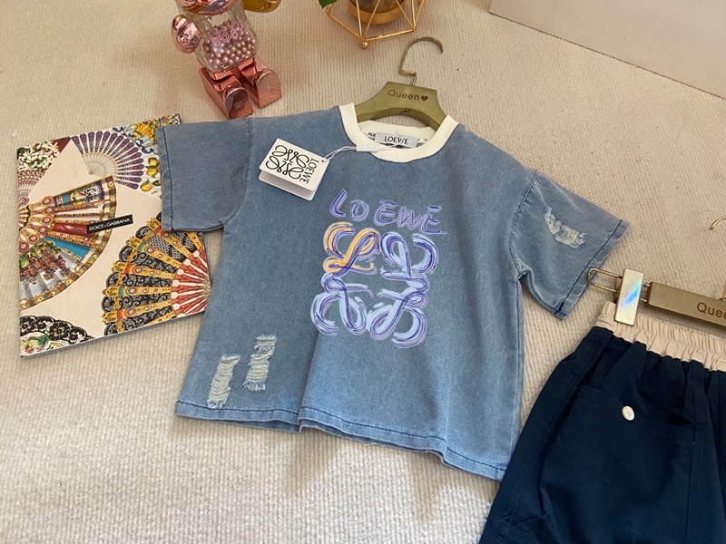 ブランド名: loewe子供服キッズ ロエベ風 デニム ネイビー 百搭コーデセットロエベキッズ tシャツ