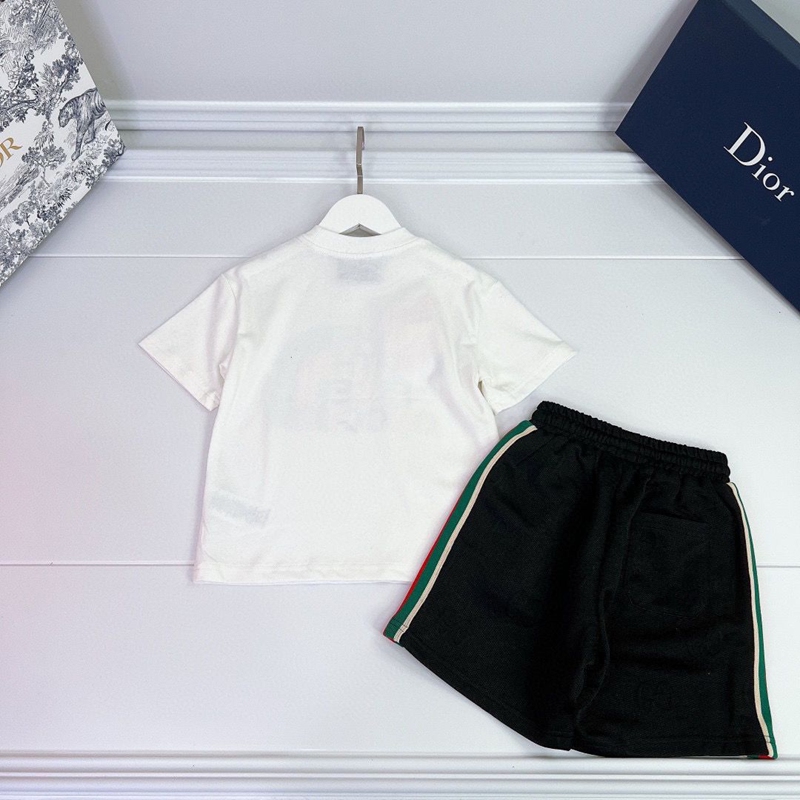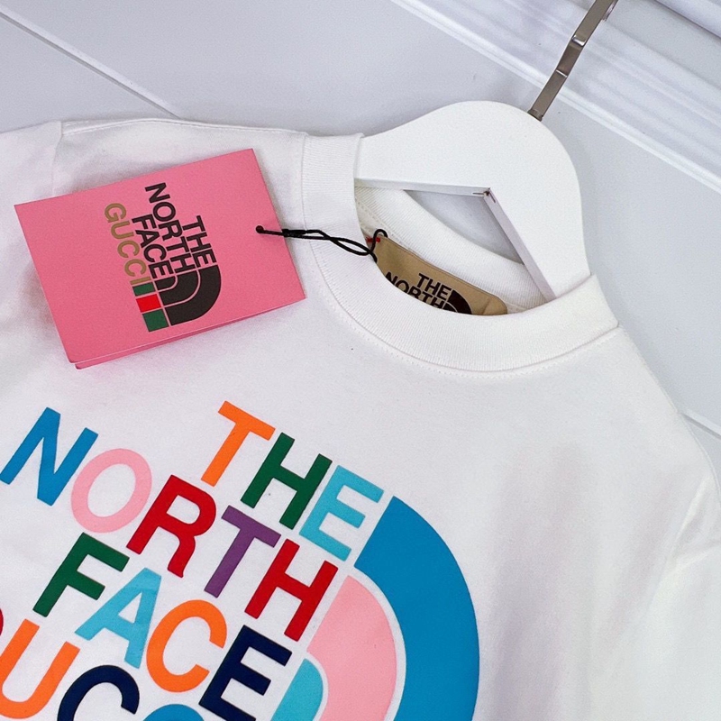 ブランド名:キッズノースフェイス × グッチ風カラフルロゴ T シャツ + トリコロールラインショーツ