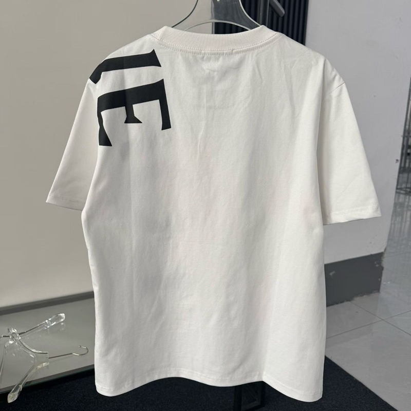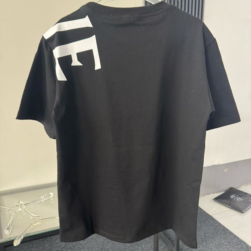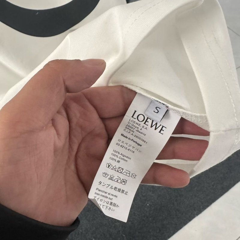 ブランド名: ロエベ風縦ロゴプリントクルーネック半袖 T シャツ ホワイト / ブラック 2 色展開 ユニセックス