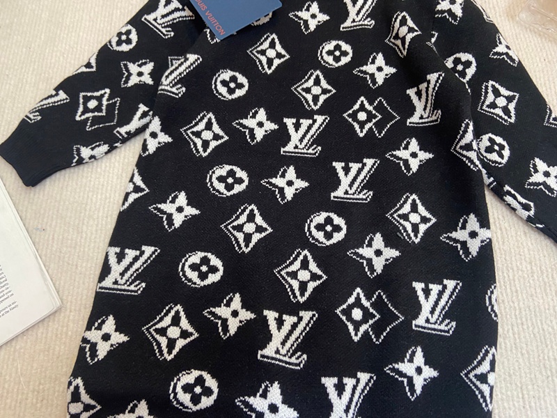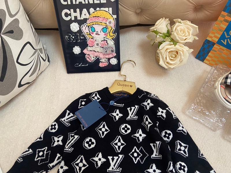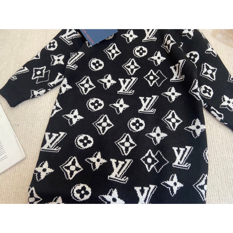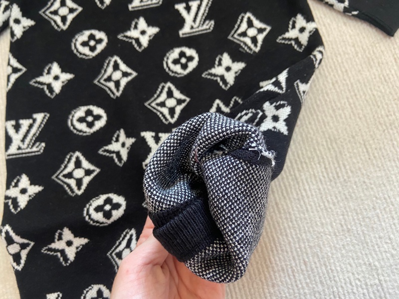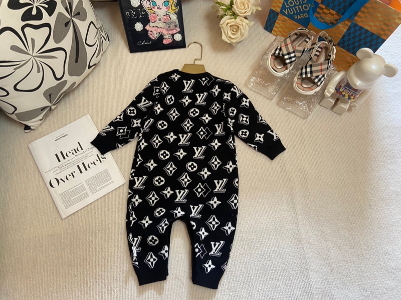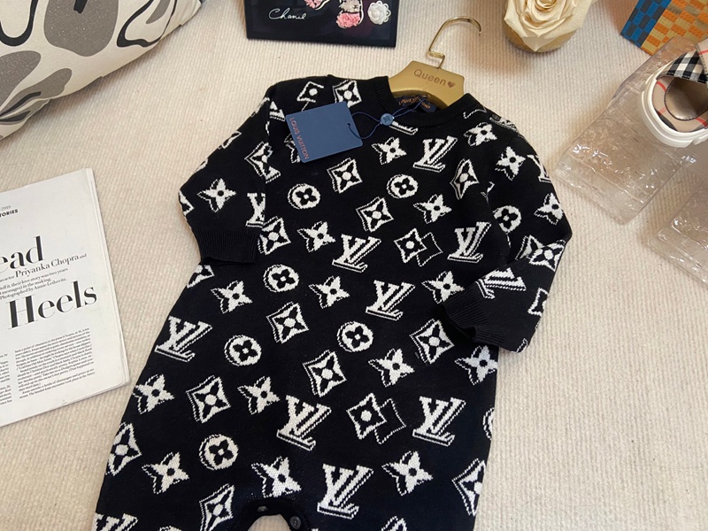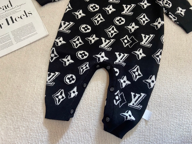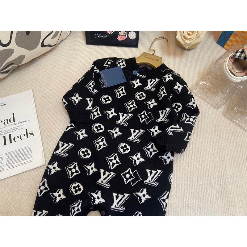 ブランド名: ルイヴィトン風 ベビーニットロンパース 秋冬向け ブラックモノグラム 新生児〜幼児用 可愛いデザインLV