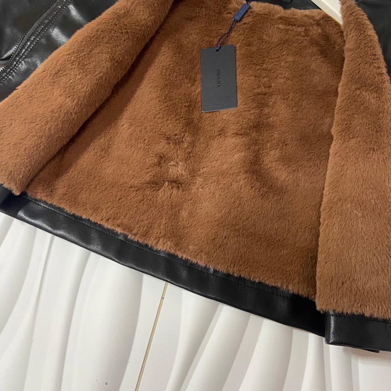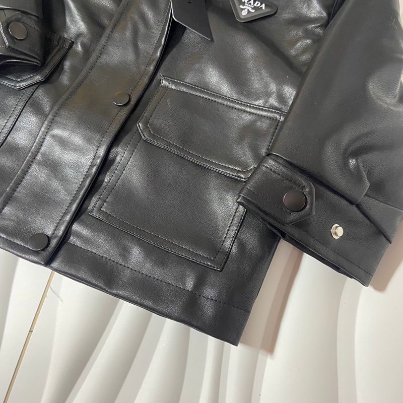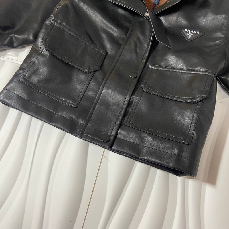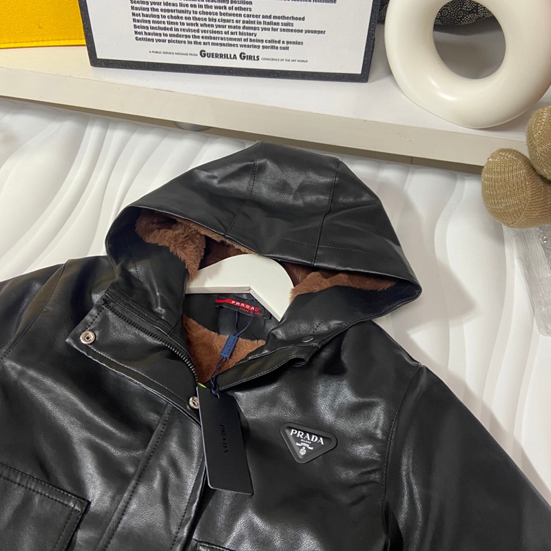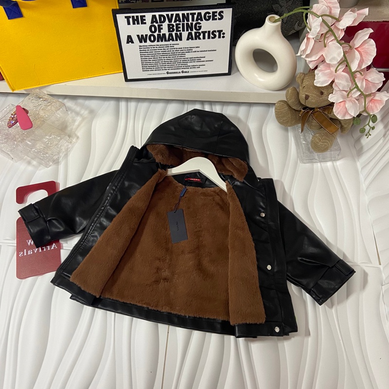 ブランド名: ハイブランドプラダprada子供服キッズ秋冬用プラダ風ブラックレザージャケット フード付き 男女共用