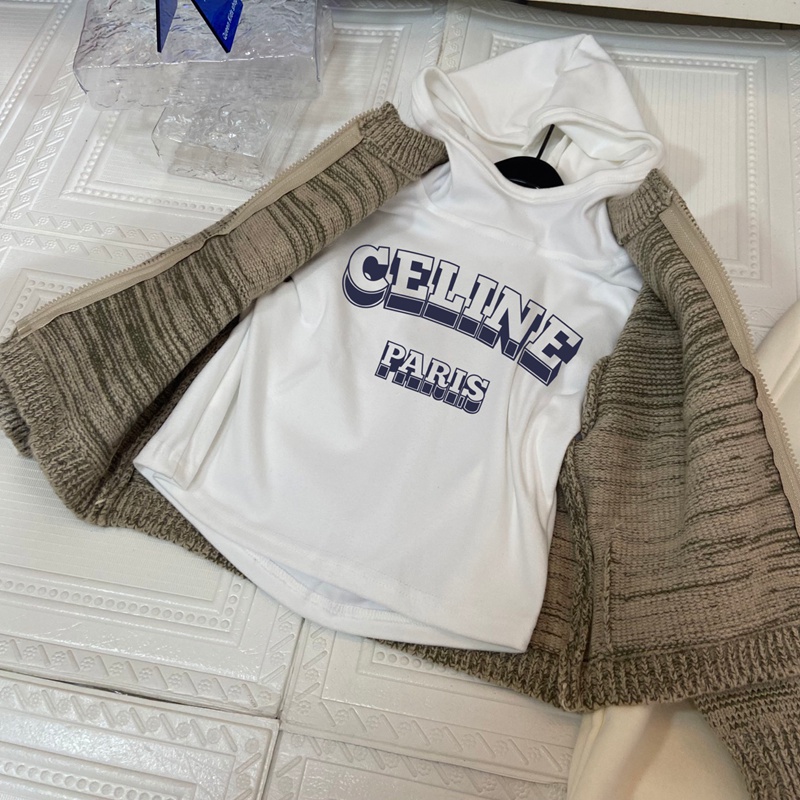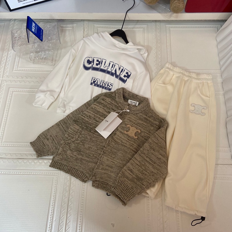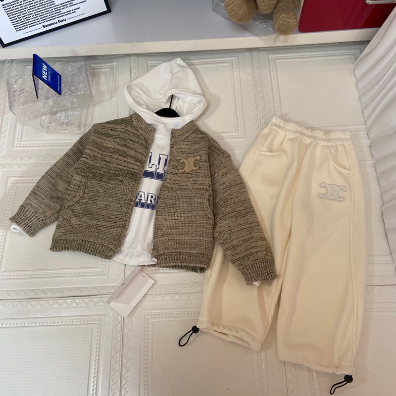 ブランド名: セリーヌ子供服キッズ日常用セリーヌ風ニットセットアップ トリオンフロゴ 男女共用