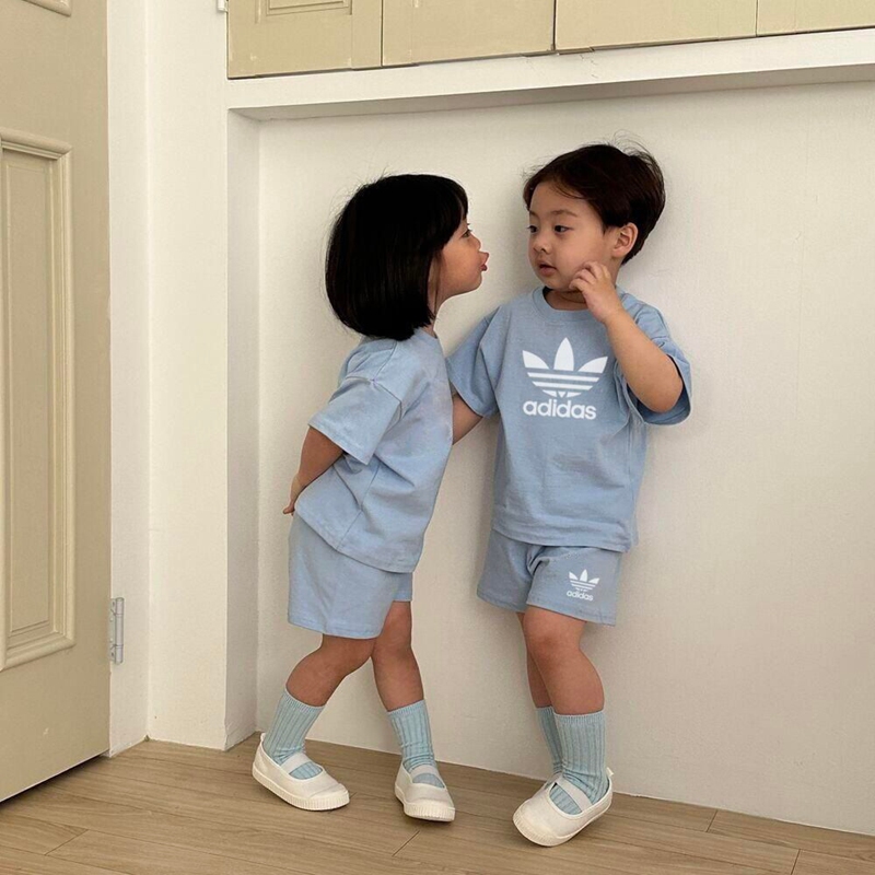 ブランド名: Adidas子供服 キッズ アディダス風 クルーネック半袖 + ショーツ 2 点セット