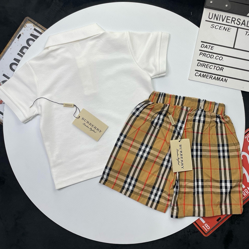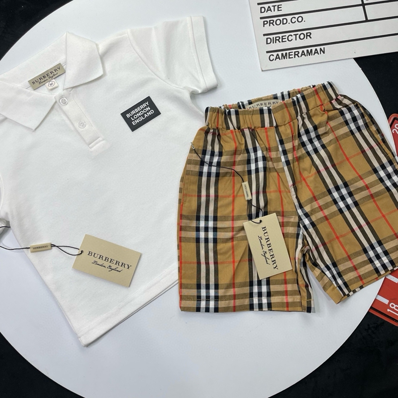 ブランド名: バーバリーハイブランド子供服 コピー高級感 百搭男女兼用 バーバリー風ロンドンロゴポロシャツセット 春夏 お出かけ