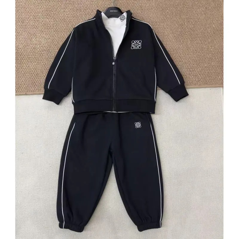 ブランド名: loewe子供服キッズ ロエベ風 コントラストライン ブラックトラックスーツ