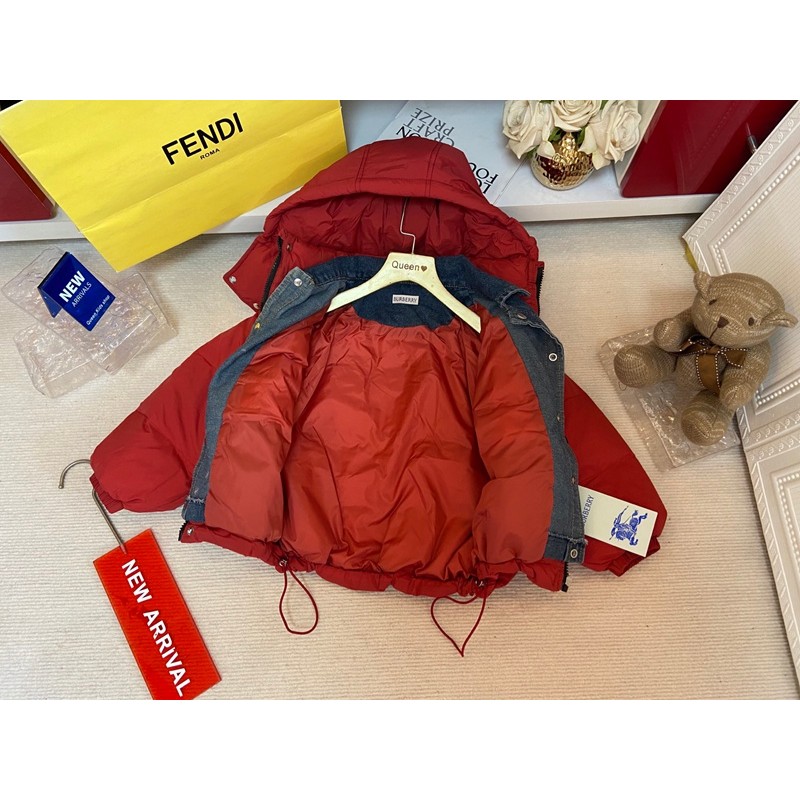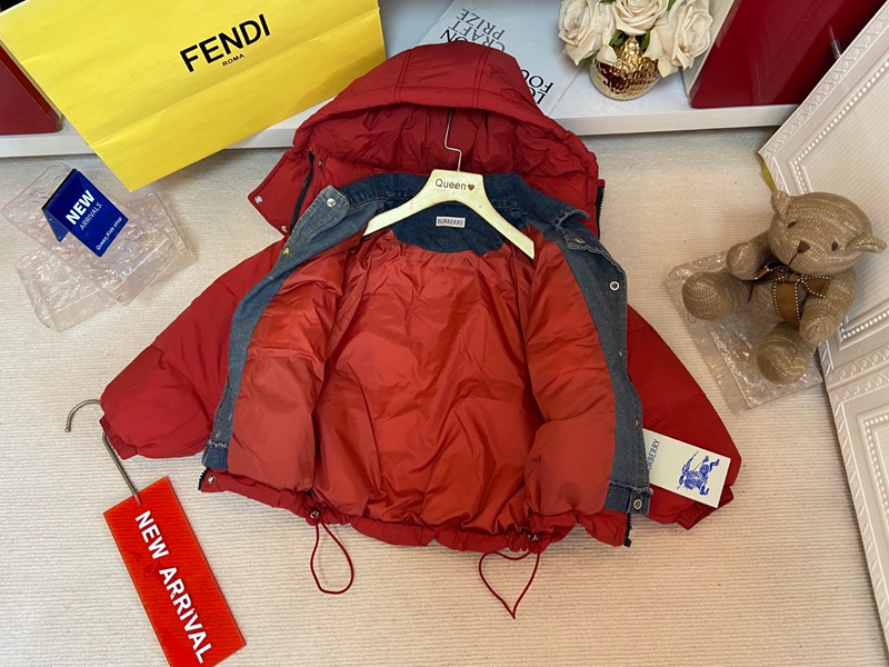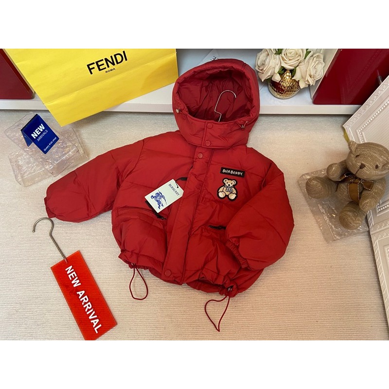 ブランド名: Burberry秋冬用 バーバリー風 男女童 レッド フード付きダウンジャケット