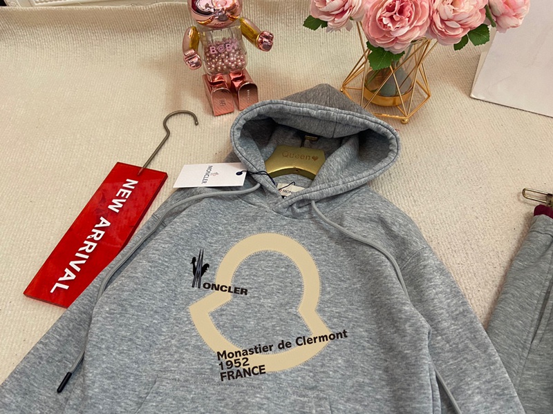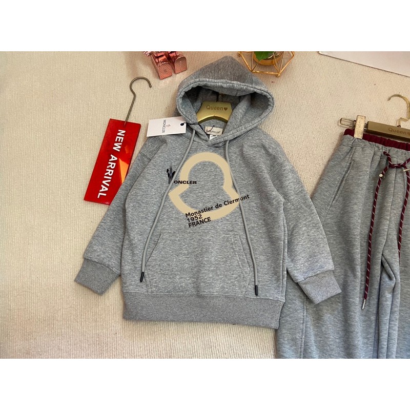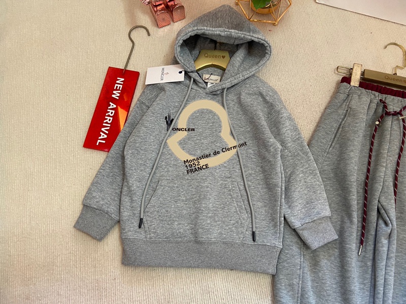 ブランド名: モンクレール風キッズセットアップグレーフードスウェット 2 点セット ロゴプリント 男女童共用