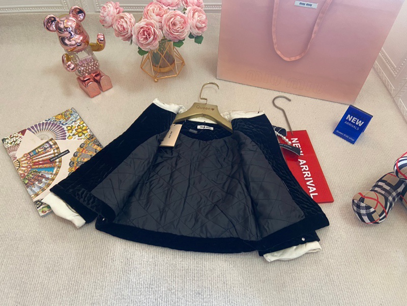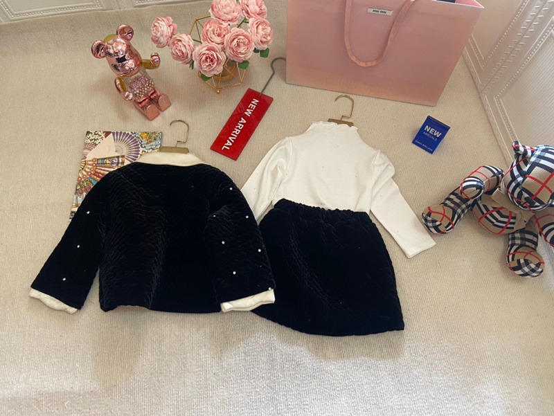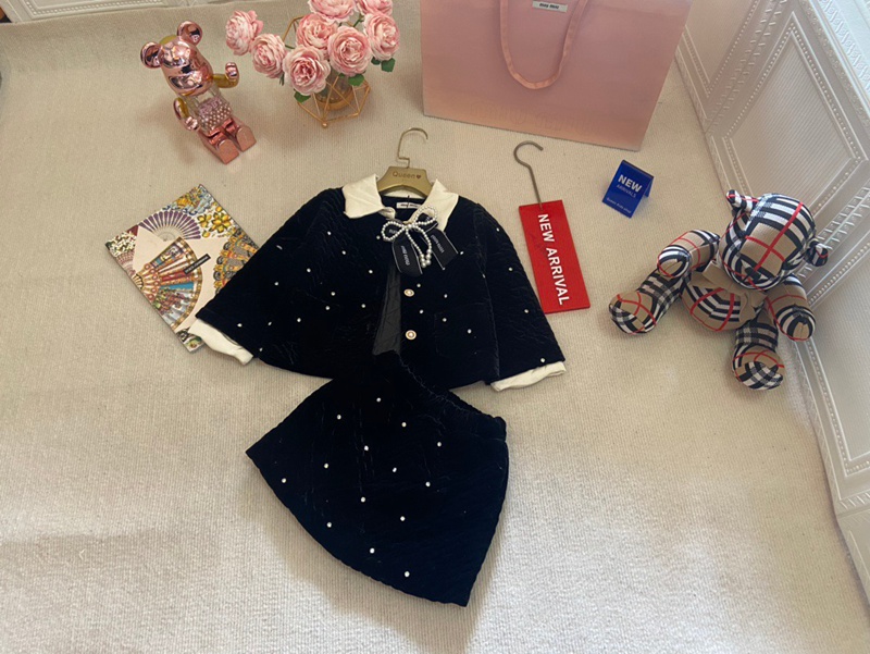 しっかり厚みがありながら、軽い着心地が魅力の秋冬用 ミュウミュウ風 女童 ブラックベルベット 3 点セットです。