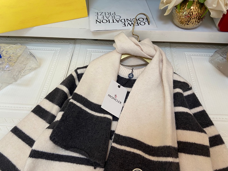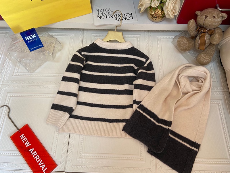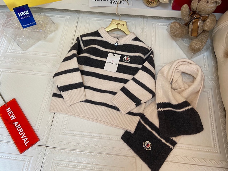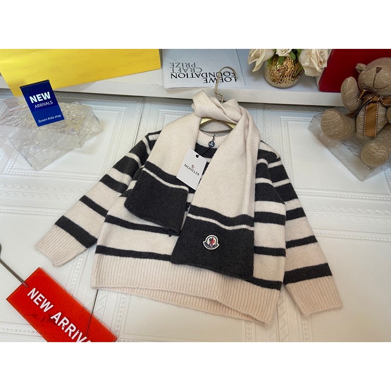 ブランド名:モンクレール風 キッズ カジュアル ブラック × ベージュ ニット + スカーフセットMONCLERハイブランド子供服
