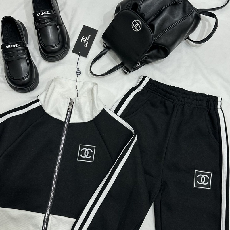 ブランド名: シャネル風キッズモノクロトラックスーツ ロゴパッチ ユニセックス 120-170 サイズ