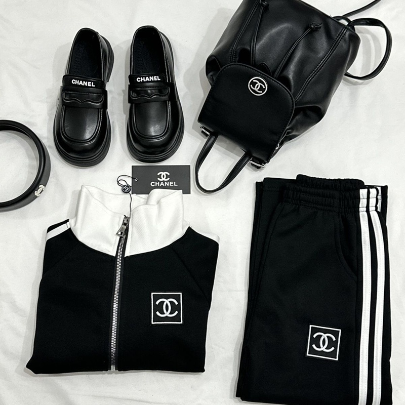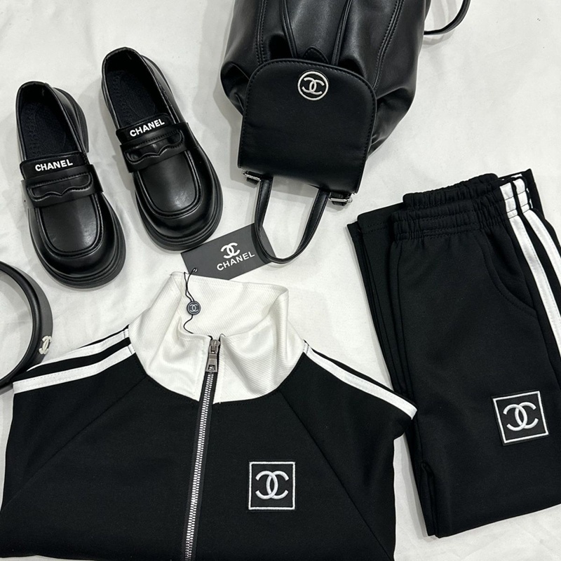 シンプルだからこそデイリー使いにぴったりのシャネル風 キッズブラックトラックスーツ ホワイトライン ロゴアクセント 。 季節の変わり目や冷房対策など、寒い日の重ね着にもオススメ!幅広いシーンで活躍するアイテムです♪