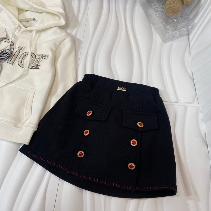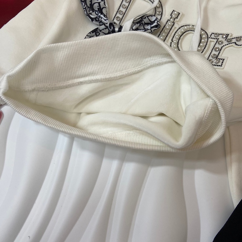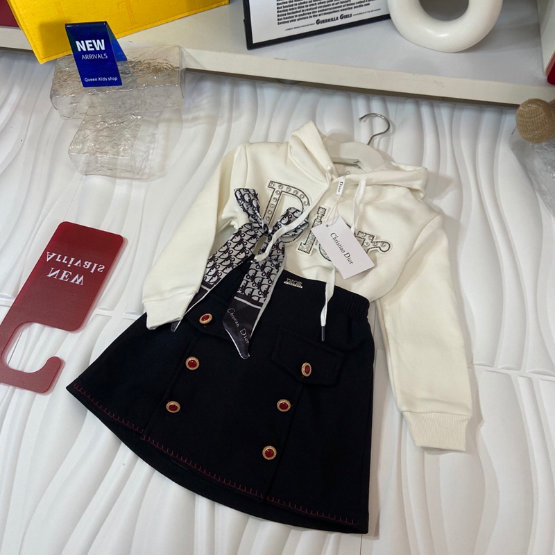 ブランド名: ディオール風女児ホワイトフーディーブラックスカートセット 女児用 90-140 サイズ