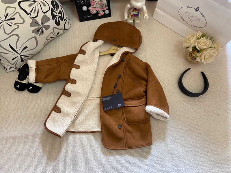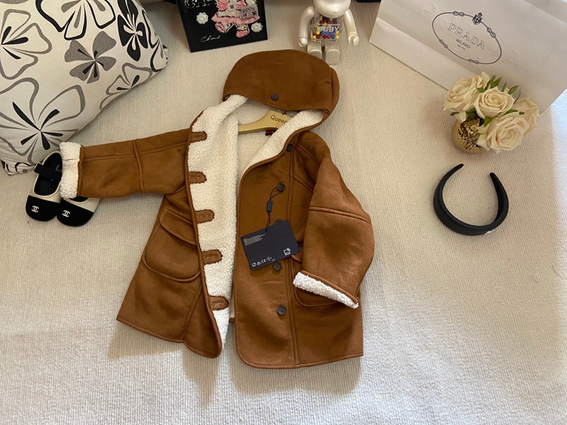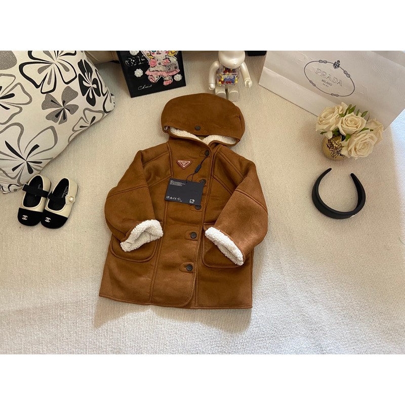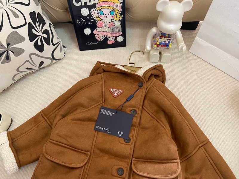 ブランド名: プラダ風キッズブラウンアウター フード付き 保温性抜群激安プラダ子供服秋冬子供キッズ服
