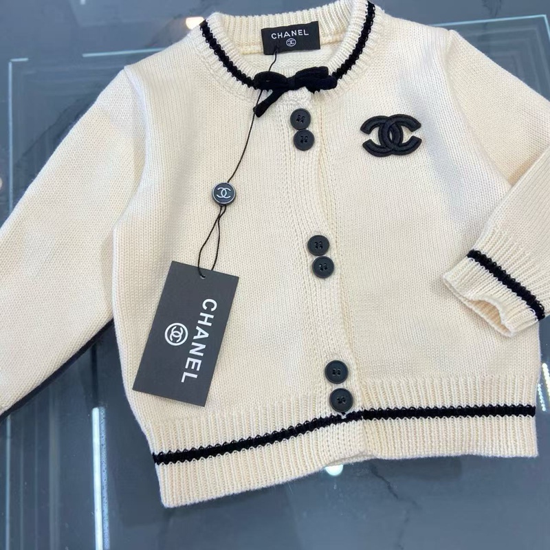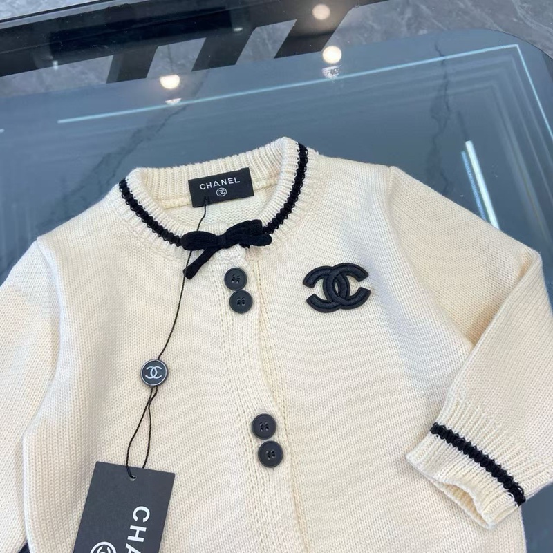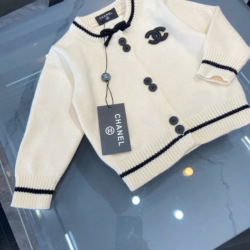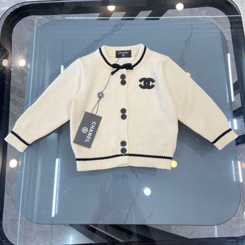 ブランド名: シャネル風 子供服可愛い女の子キッズロゴニットカーディガン ホワイト ブラックライン 高品質CHANEL子供洋服韓国風