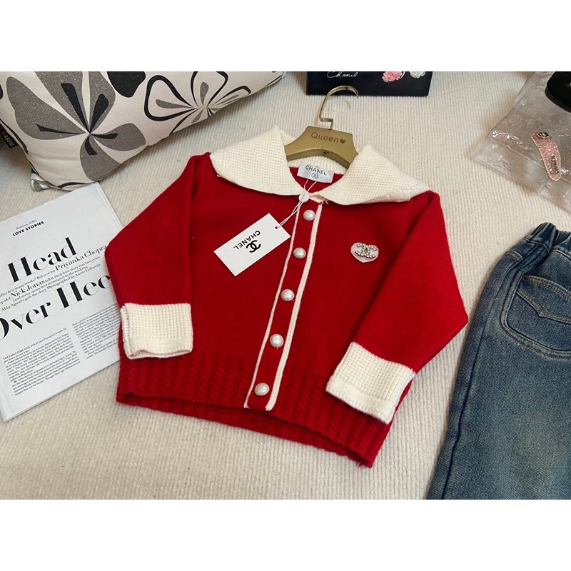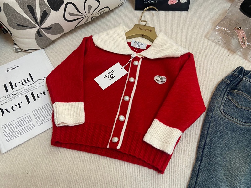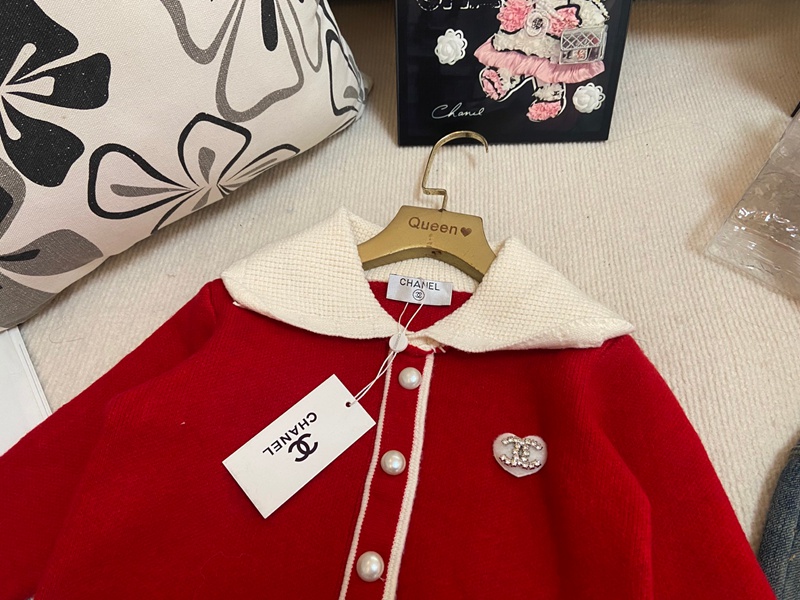 ブランド名: シャネルCHANEL子供服ウェア激安キッズ シャネル風 高級感 ロゴアクセント レッドニット 2 点セットハイブランド韓国風