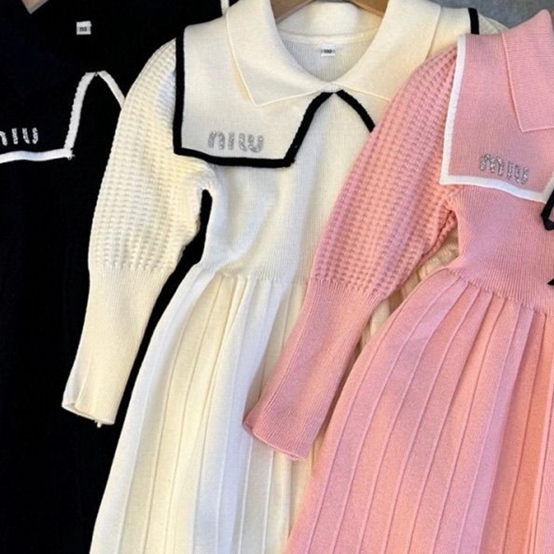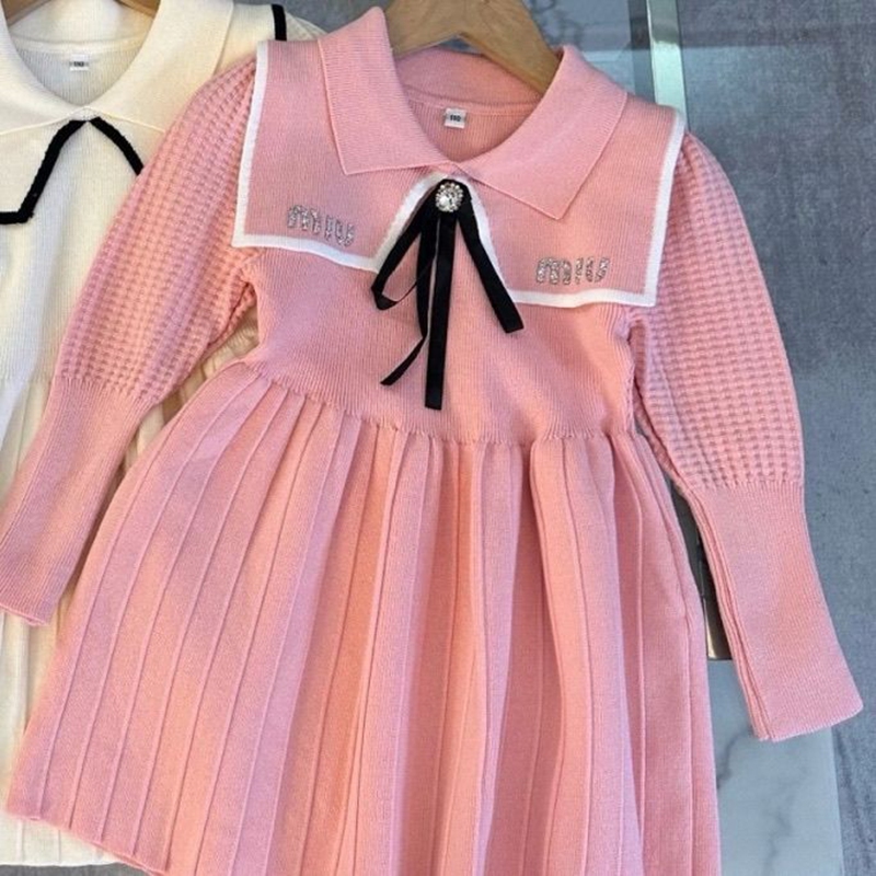 ブランド名:MiuMiuミュウミュウ子供服 女の子向け ミュウミュウ風襟付きプリーツワンピース 入園入学 お祝い着