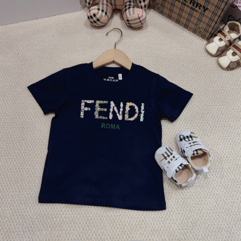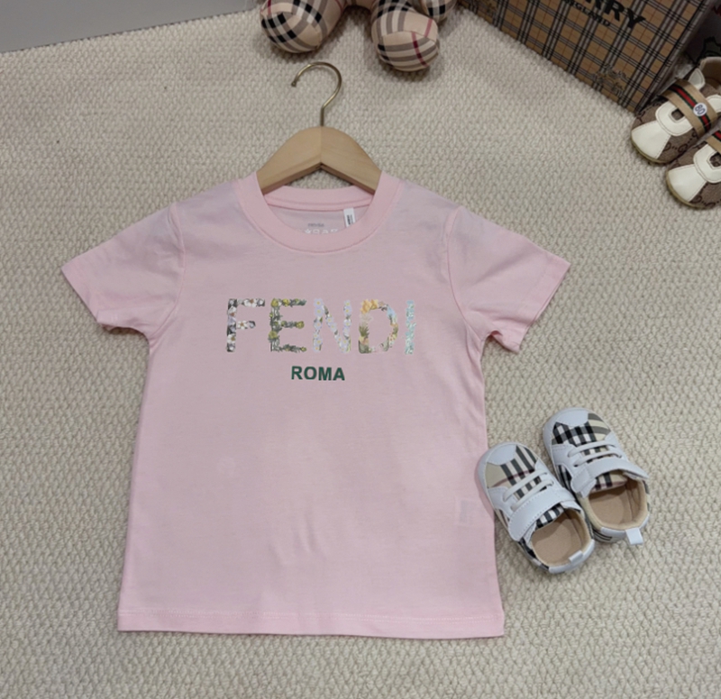 大切な人とお揃いで着られる、特別なコーディネート T シャツフェンディ風 FENDI ロゴキッズ T シャツ。